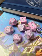 The faery moon theme of this gorgeous set makes it perfect for any fairycore nerds out there, but these one-of-a-kind pastel dice will make a unique addition to anyone's collection.