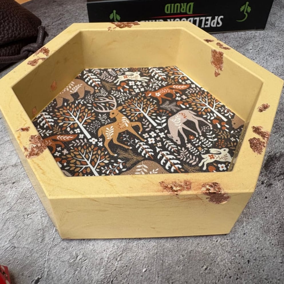 Small hexagon dice tray for DnD, Pathfinder, or any TTRPG where you need to roll some dice.